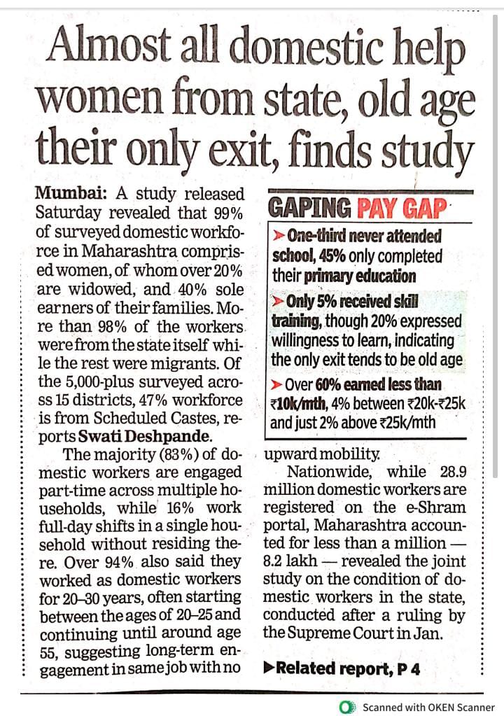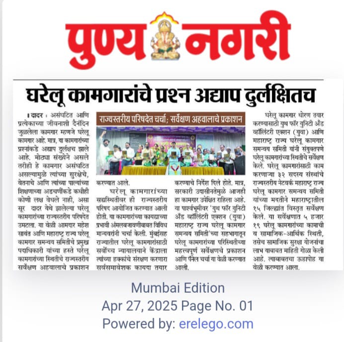 The Situational Analysis of Domestic Workers in Maharashtra, has gained media attention, featuring prominently in major publications such as The Times of India, Navrashtra Bharat, Telugu Daily Neti Udayam, Telugu Daily Praja Kalam, and Punya Nagari. This coverage has played a key role in bringing the realities and challenges of domestic workers into the public eye, helping to raise awareness across Maharashtra and beyond.