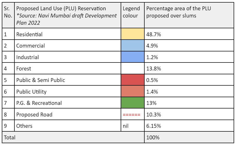 The DP acknowledges the Census 2011 slum list, however, the Existing Land Use maps published in 2018 that inform the Development Plan, are not available in the public domain.