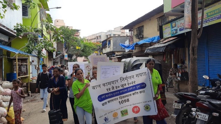 The team recently observed ‘World Day Against Child Labour’ through a detailed campaign that travelled across suburban Mumbai and Navi Mumbai (such as in Kurla, Dadar, Vashi station, Airoli, and Nerul station). The campaign was well aligned with the team’s larger objectives to spread awareness on child rights, including child labour, domestic child labour, and to do this in high density areas and reach the public at large.